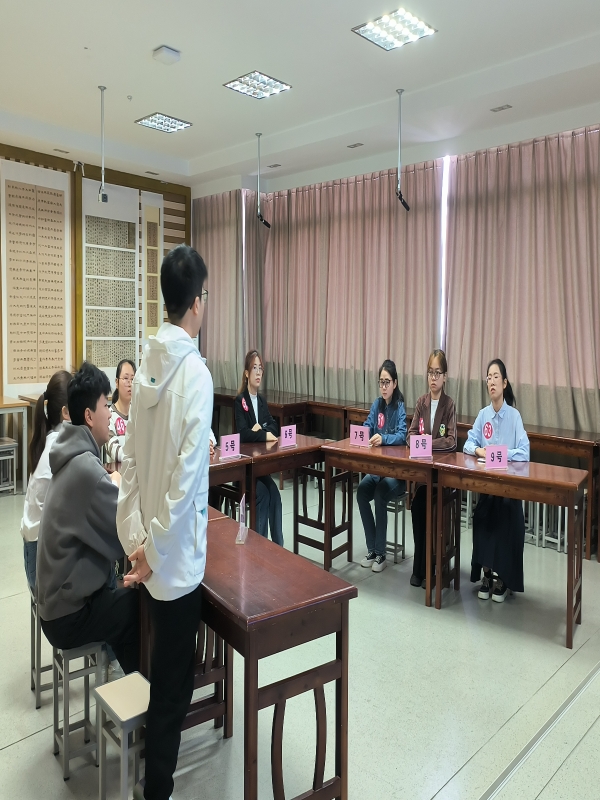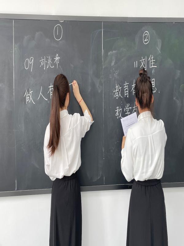 此次选拔经2023级师范类专业学生个人申报、二级学院资格审查、初试、复试等环节层层筛选,最终有汉语言文学、数学与应用数学、思想政治教育等8个师范专业共推出108名学生参加面试。本次面试选拔分为自我介绍、粉笔字书写、才艺与特长展示、无领导小组讨论四个环节。在面试过程中总体展现出较强的专业素质及师范生技能。