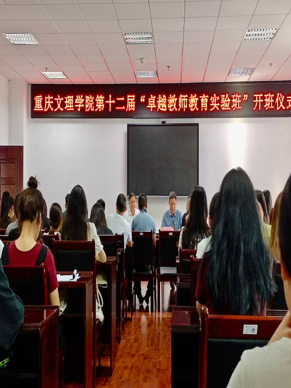 5月15日,由我校与重庆市教育科学研究院联合举办的第十二届卓越教师教育实验班(以下简称卓越班)在恪勤楼221会议室举行开班仪式。党委常委、副校长李天福,教务处相关负责人、师范类所在学院分管教学工作负责人以及第十二届卓越班全体学员共100余人参加了开班典礼。