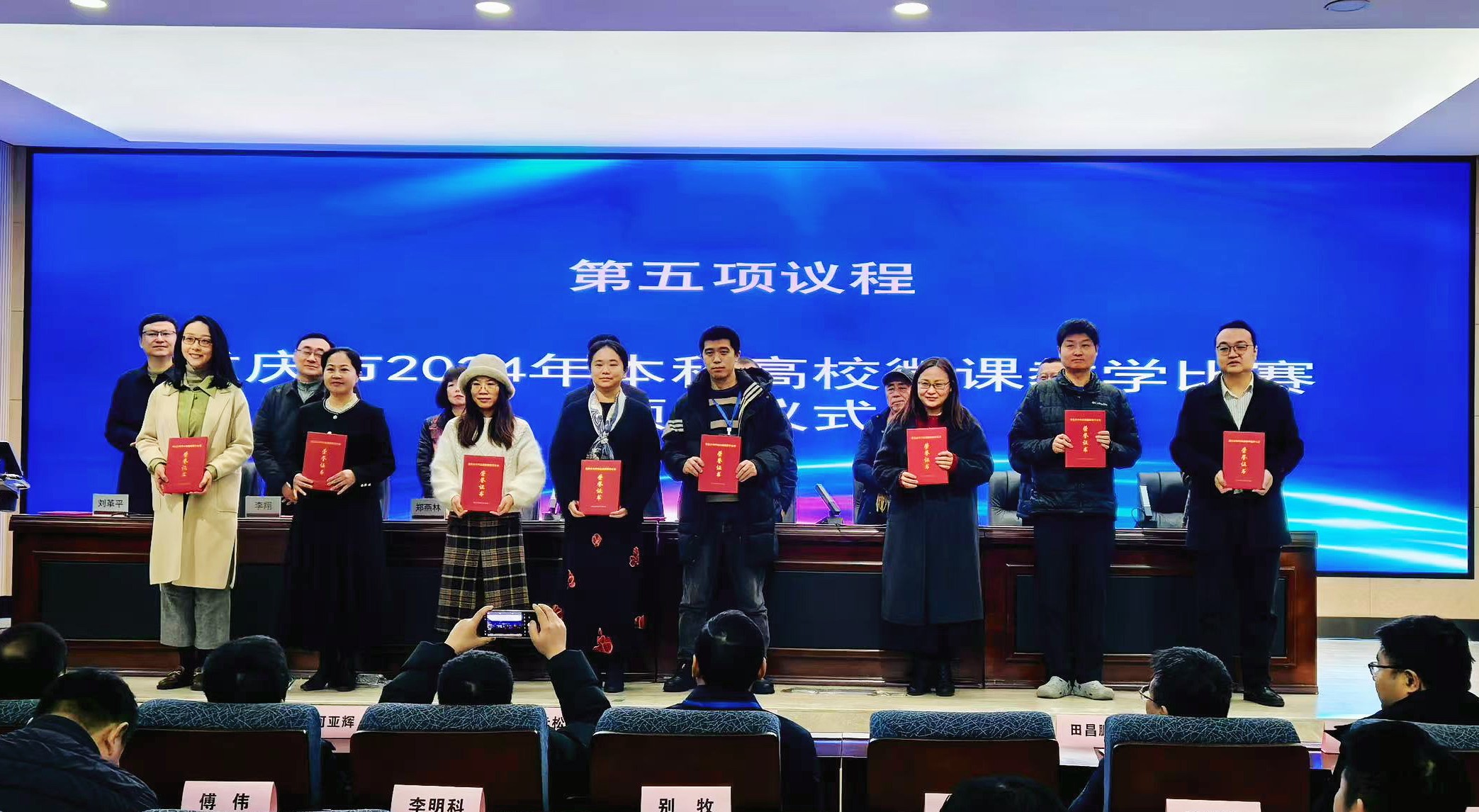 12月27日,重庆市2024年本科高校微课教学比赛颁奖大会暨重庆市高等教育学会教育技术专业委员会2024年学术年会在重庆医科大学举行。我校马克思主义学院曾豪老师、经济管理学院漆沫沙老师团队作品荣获一等奖,文化传播与设计学院秦媛老师作品荣获二等奖,师范学院张玲老师等5个团队作品荣获三等奖,学校荣获优秀组织工作奖,程华老师荣获优秀组织个人奖,在获奖数量上取得新突破。